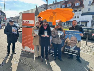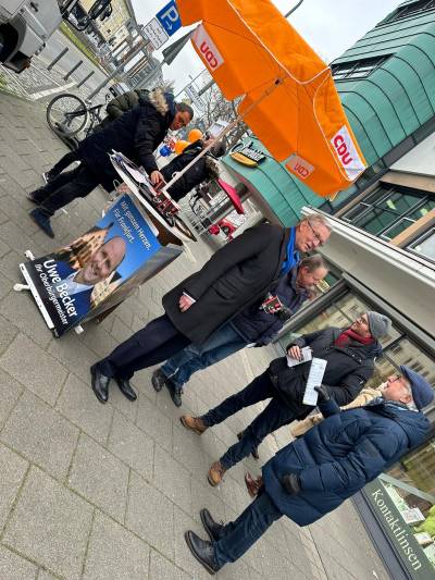 Die Wahlkämpfer vor dem neuen Infostand der CDU Dornbusch