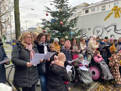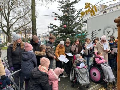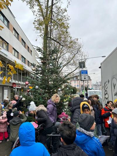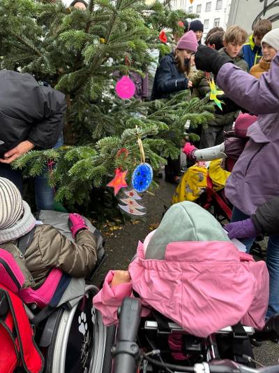 Auch in diesem Jahr veranstaltete die Kinderbeauftragte des Dornbusch, Evangelia Georgalis, gemeinsam mit Schülern der Viktor-Frankl-Schule und der Musikklase 7e der Wöhlerschule ein inklusives Weihnachtsbaumschmücken mit anschließendem Gesang. Auch der Ortsvorsteher Friedrich Hesse war zugegen ebenso wie die Stadtverordnete Verena David. Gemeinsam zeigte sie, dass Inklusion am Dornbusch tatsächlich gelebt wird und ein bedeutendes Anliegen für den gesamten Stadtteil ist.
